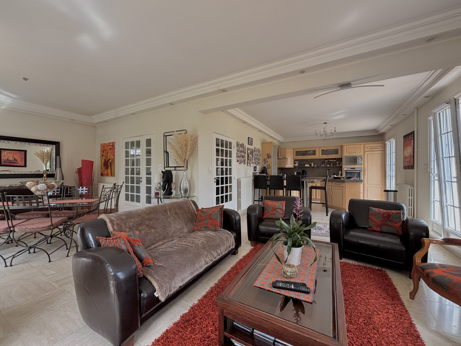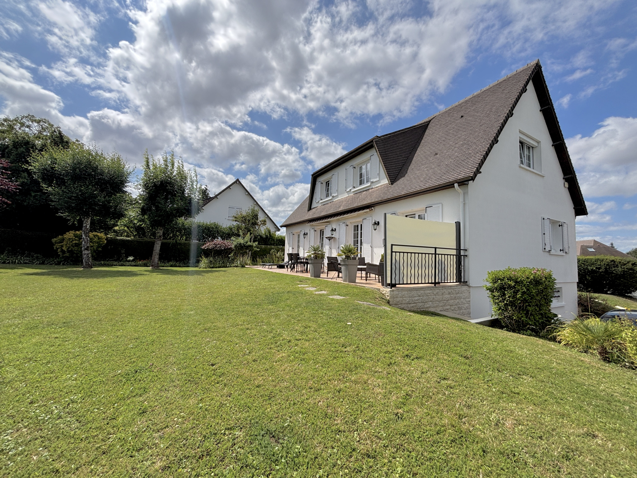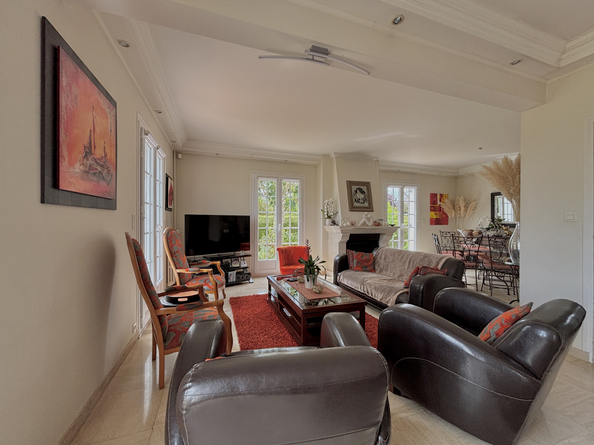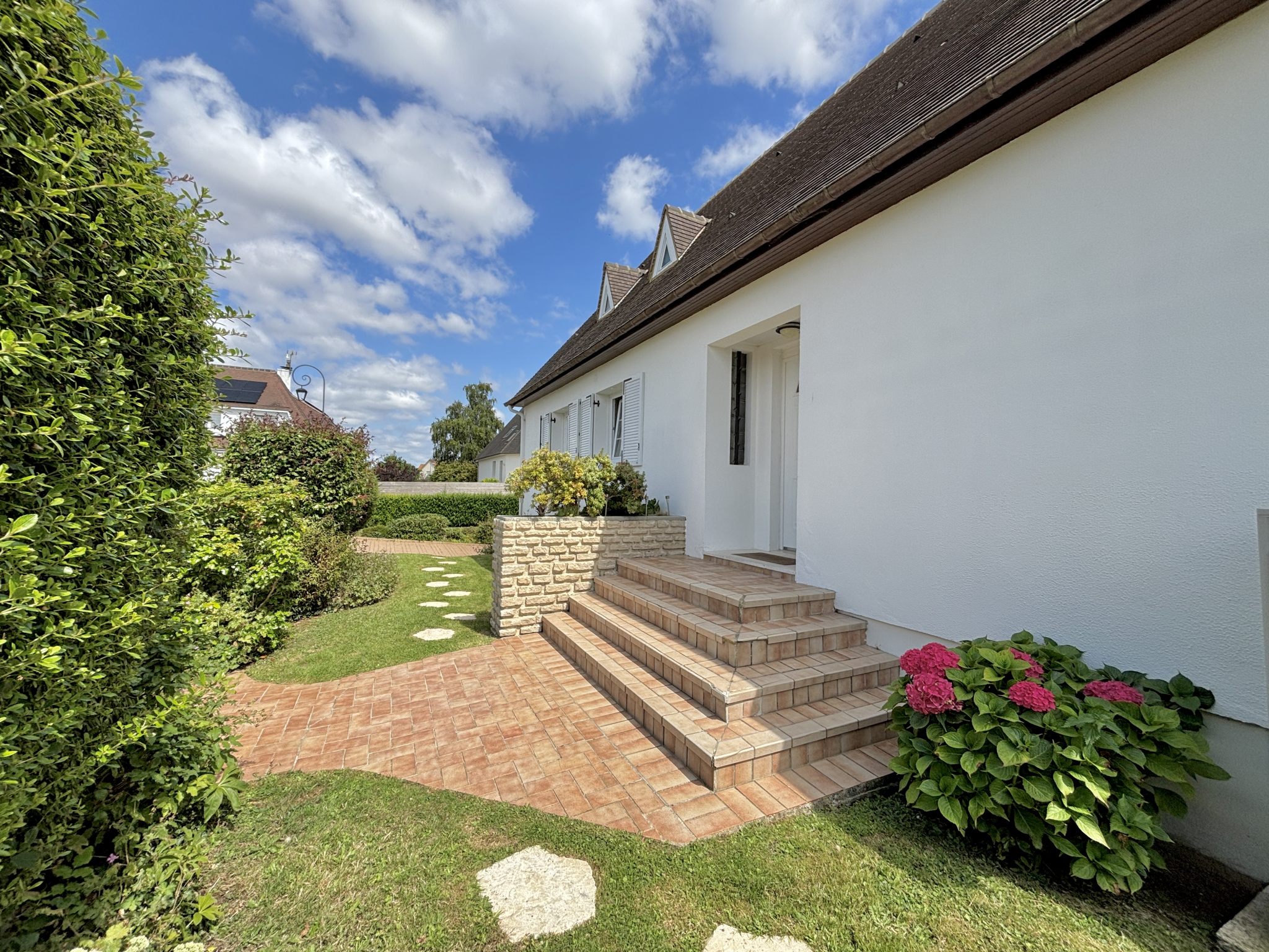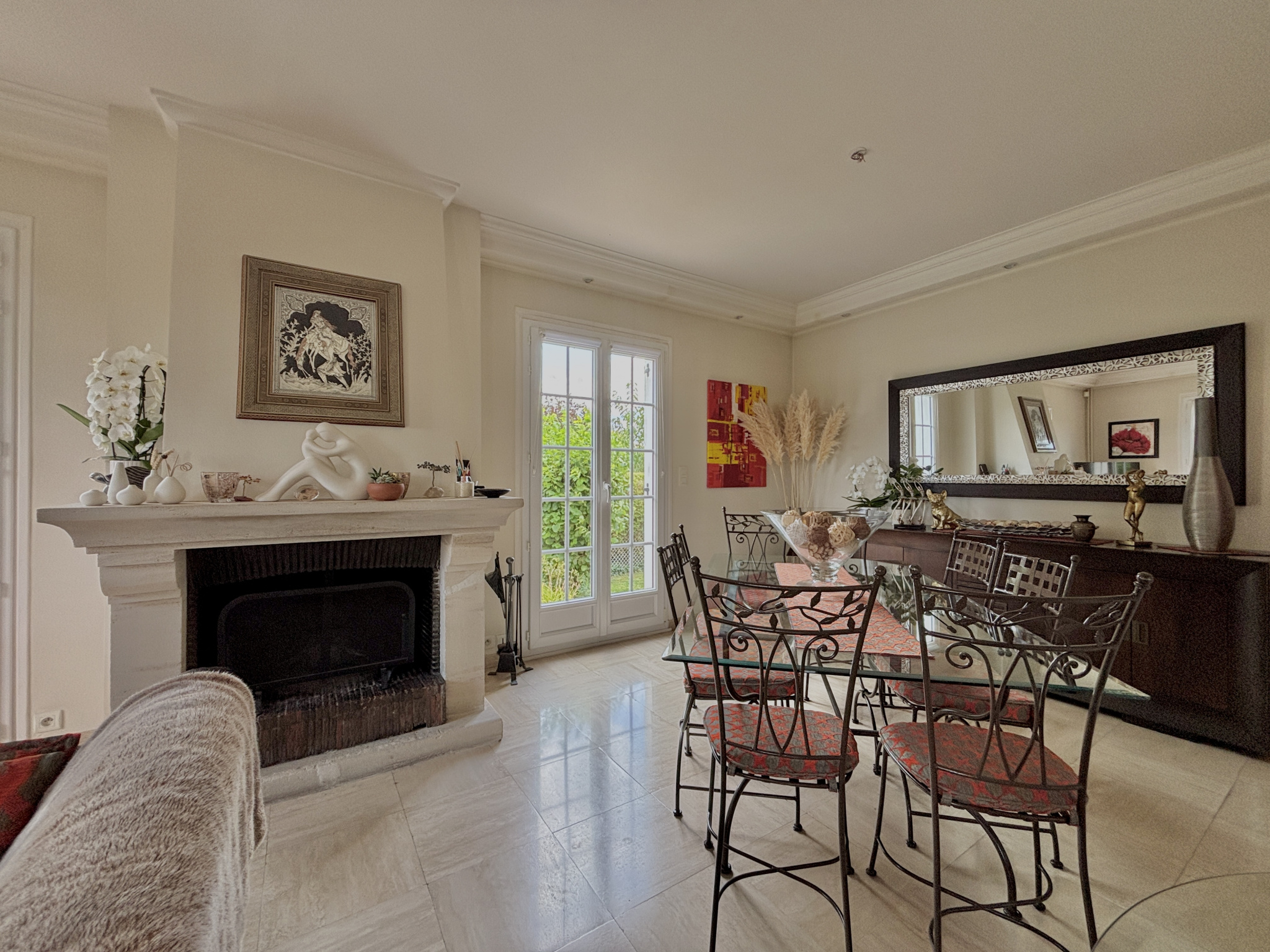 Au sein d'une commune avec école et commerces accessibles à pied, et à moins de 5 minutes du périphérique, découvrez cette charmante maison offrant de beaux volumes sur une parcelle d'environ 1 000 m², édifiée sur sous-sol complet, et profitant d'un environnement calme en impasse. Vous accédez à une vaste entrée desservant la pièce de vie avec cuisine comprenant un espace dinatoire, et ouverte sur l'espace salon bénéficiant d'une jolie cheminée. Vous serez séduits par la clarté de cette pièce dotée de nombreuse portes fenêtres exposées sud et ouest et laissant accès à la terrasse et au jardin. Vous profitez d'une vie de plain-pied confortable avec la suite parentale du rez-de-chaussée. Sur ce niveau, vous retrouvez également un bureau/dressing, et un WC séparé. L'étage est composé d'un espace en mezzanine pouvant accueillir un bureau, une bibliothèque, une salle de jeux, ou bien une chambre supplémentaire (possibilité de cloisonner). En plus, on retrouve 3 chambres, dont 2 équipées de placards, une salle de douche, et un WC. Le sous-sol permet de stationner 2 véhicules et comprend différents espaces de stockage et/ou salle de sport. L'ensemble est parfaitement entretenu et chauffé par une pompe à chaleur, A l'extérieur, on retrouve le jardin clos et arboré avec cabanon, et une aire de stationnement. Cadre propice à la quiétude, idéal pour une famille.