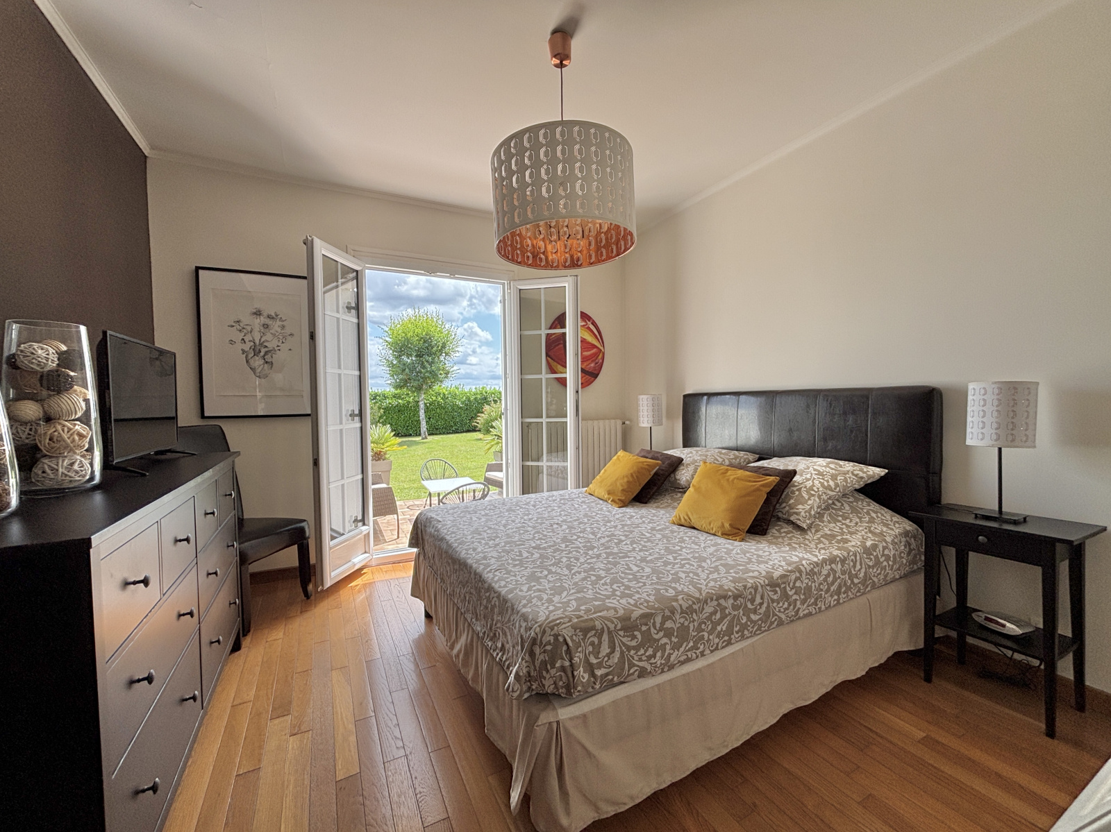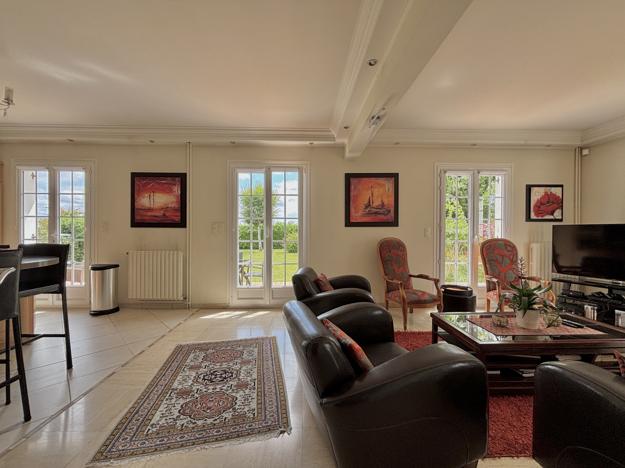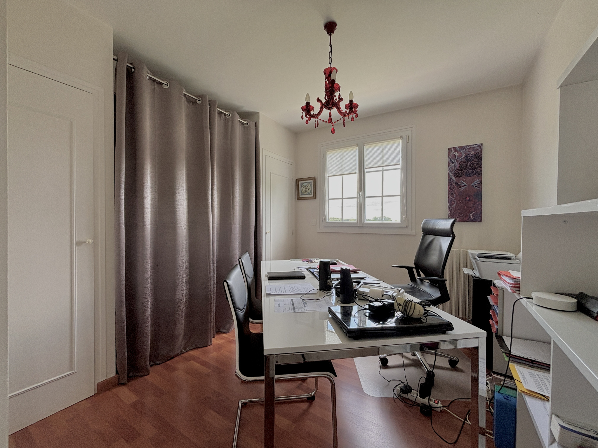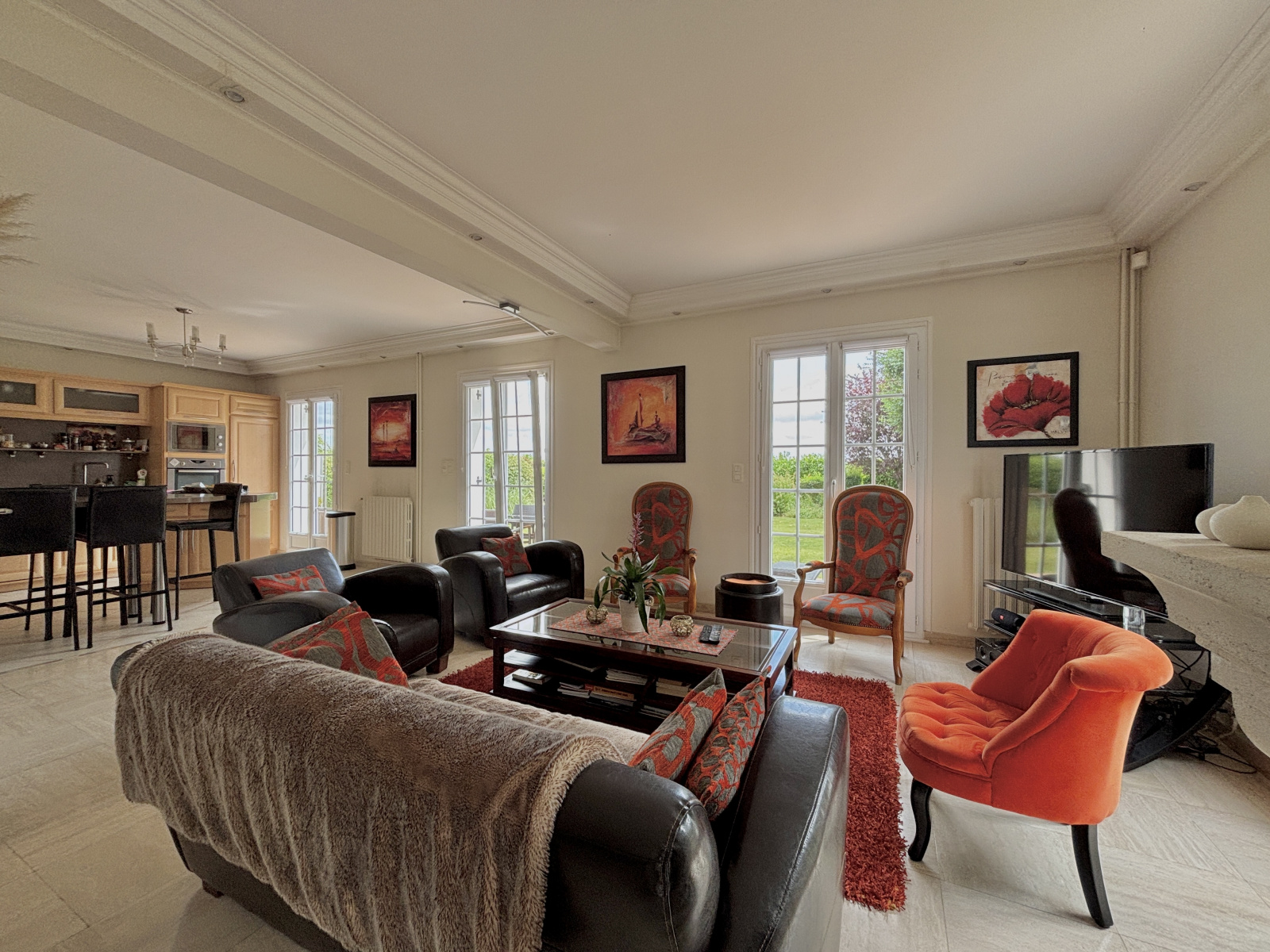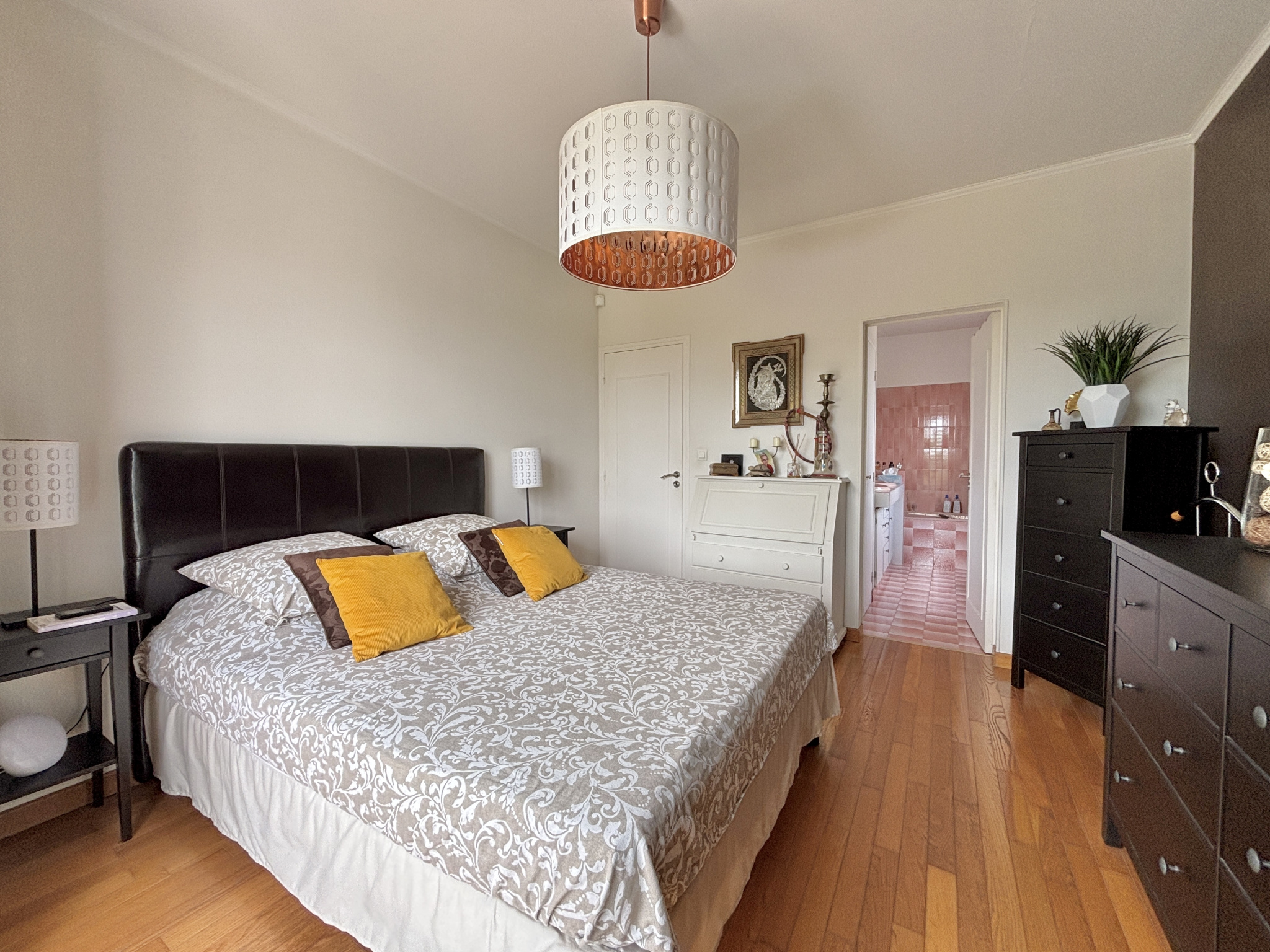 Au sein d'une commune avec école et commerces accessibles à pied, et à moins de 5 minutes du périphérique, découvrez cette charmante maison offrant de beaux volumes sur une parcelle d'environ 1 000 m², édifiée sur sous-sol complet, et profitant d'un environnement calme en impasse. Vous accédez à une vaste entrée desservant la pièce de vie avec cuisine comprenant un espace dinatoire, et ouverte sur l'espace salon bénéficiant d'une jolie cheminée. Vous serez séduits par la clarté de cette pièce dotée de nombreuse portes fenêtres exposées sud et ouest et laissant accès à la terrasse et au jardin. Vous profitez d'une vie de plain-pied confortable avec la suite parentale du rez-de-chaussée. Sur ce niveau, vous retrouvez également un bureau/dressing, et un WC séparé. L'étage est composé d'un espace en mezzanine pouvant accueillir un bureau, une bibliothèque, une salle de jeux, ou bien une chambre supplémentaire (possibilité de cloisonner). En plus, on retrouve 3 chambres, dont 2 équipées de placards, une salle de douche, et un WC. Le sous-sol permet de stationner 2 véhicules et comprend différents espaces de stockage et/ou salle de sport. L'ensemble est parfaitement entretenu et chauffé par une pompe à chaleur, A l'extérieur, on retrouve le jardin clos et arboré avec cabanon, et une aire de stationnement. Cadre propice à la quiétude, idéal pour une famille.
