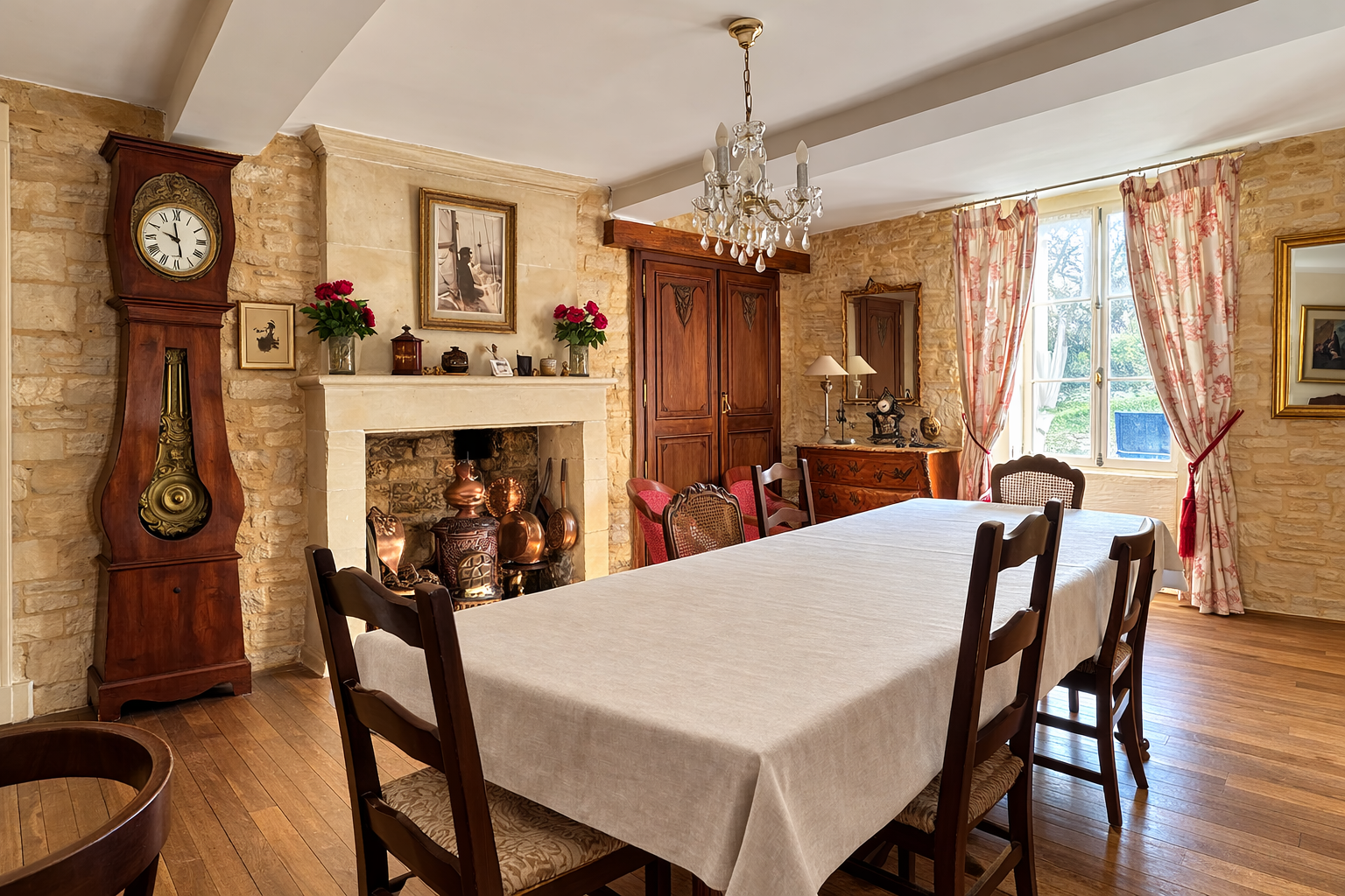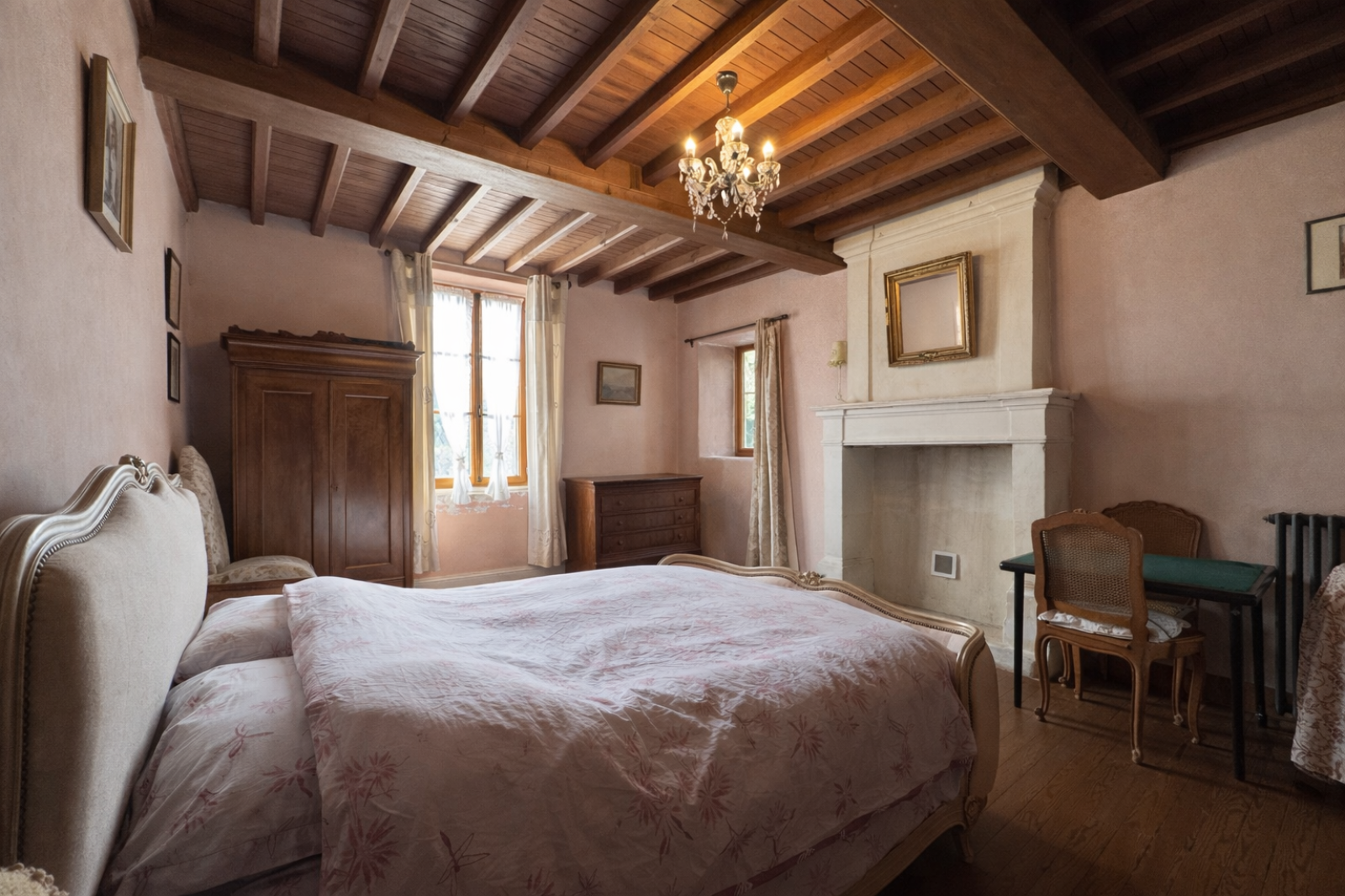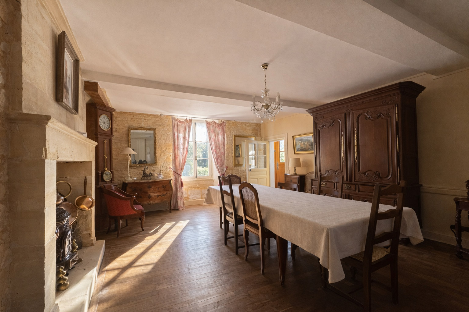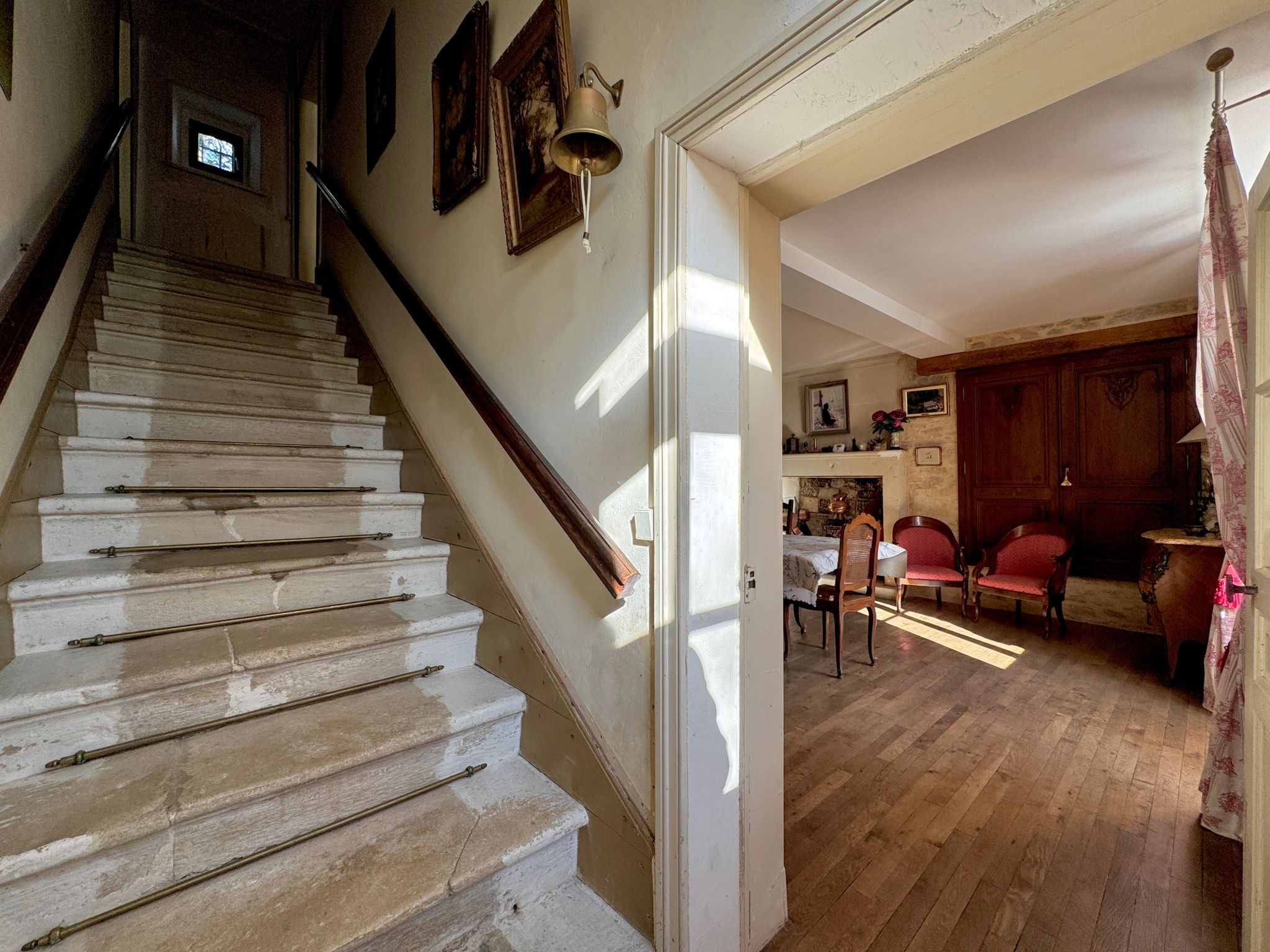 A quelques minutes à pied des commerces de Ver-sur-mer, et à 1 km de la plage, découvrez cette belle demeure en pierre implantée sur 4 000 m² de terrain arboré. Au calme et sans aucun vis-à-vis, cette maison bien orientée offre de beaux éléments anciens dans chacune des pièces (cheminées, pierres apparentes, parquets,...). Au rez-de-chaussée, on retrouve un salon avec insert, une salle à manger, une cuisine, une chaufferie et 2 salles de douche dont une avec WC. Au premier étage, 2 grandes chambres (environ 25 m² chacune), dont une passante pour accéder au dernier étage sous combles, où se trouvent 2 chambres supplémentaires. A l'extérieur, on profite d'une belle parcelle de terrain, sur laquelle se trouvent 2 cabanons pour le stockage (raccordés aux réseaux). Des travaux sont à prévoir pour exploiter son plein potentiel. Huisseries bois double-vitrage, chaudière fuel à condensation de 2021, assainissement collectif conforme, portail motorisé de 4 mètres, raccodrée à la fibre. Bien rare sur ce secteur, à ne pas manquer.