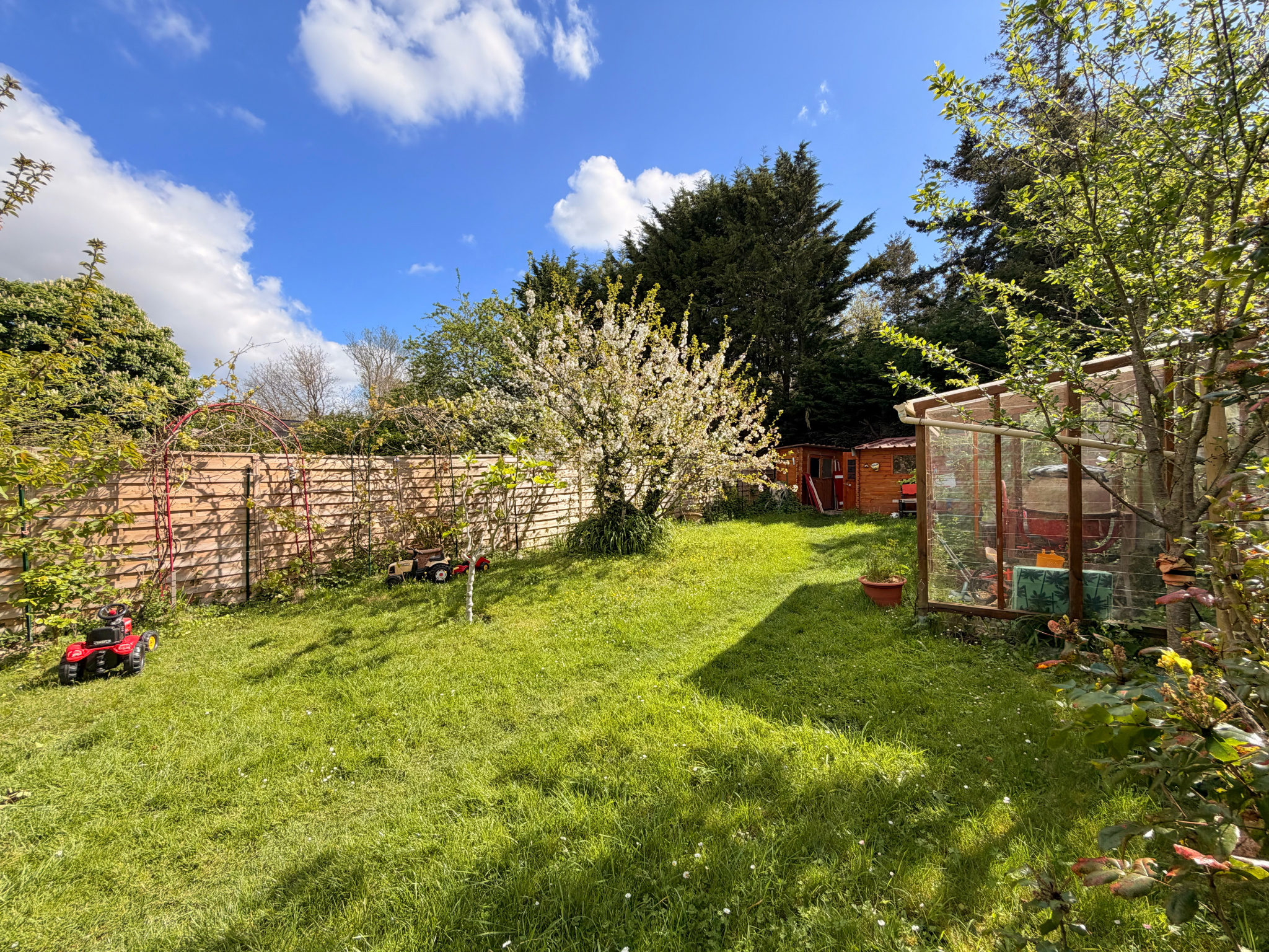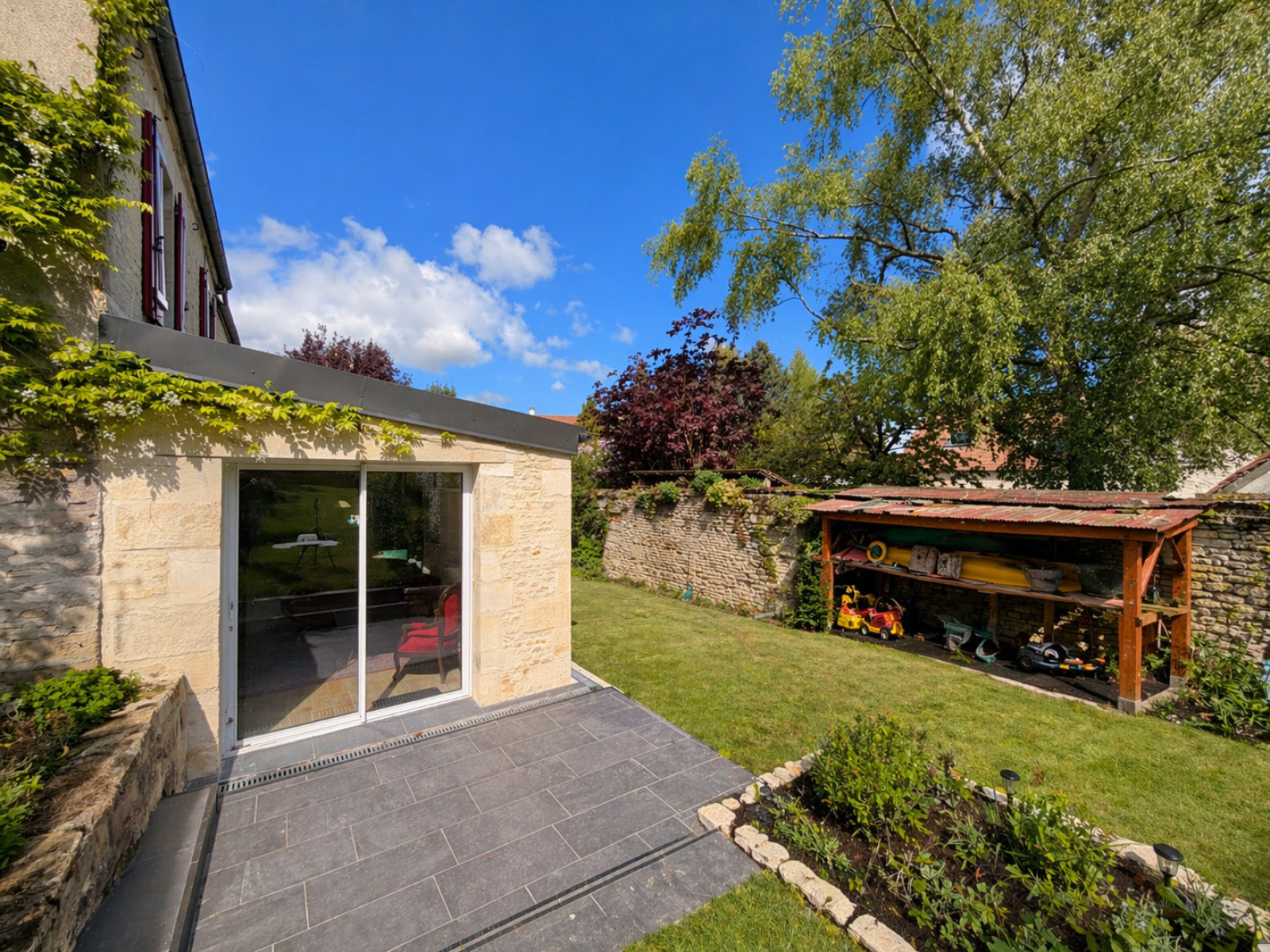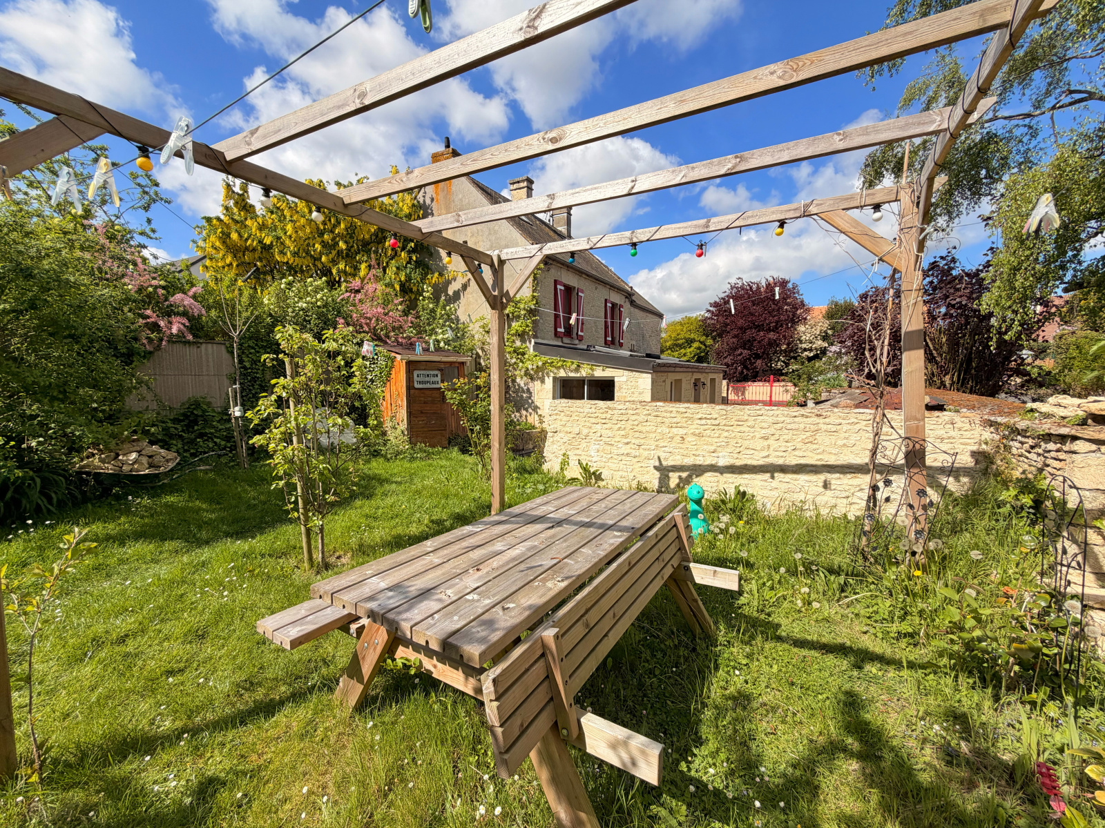 Cet ensemble est complété par un jardin arboré avec possibilité de rentrer des véhicules, ainsi que de bricoler grâce à son vaste espace de 20m2 non attenant à la maison.