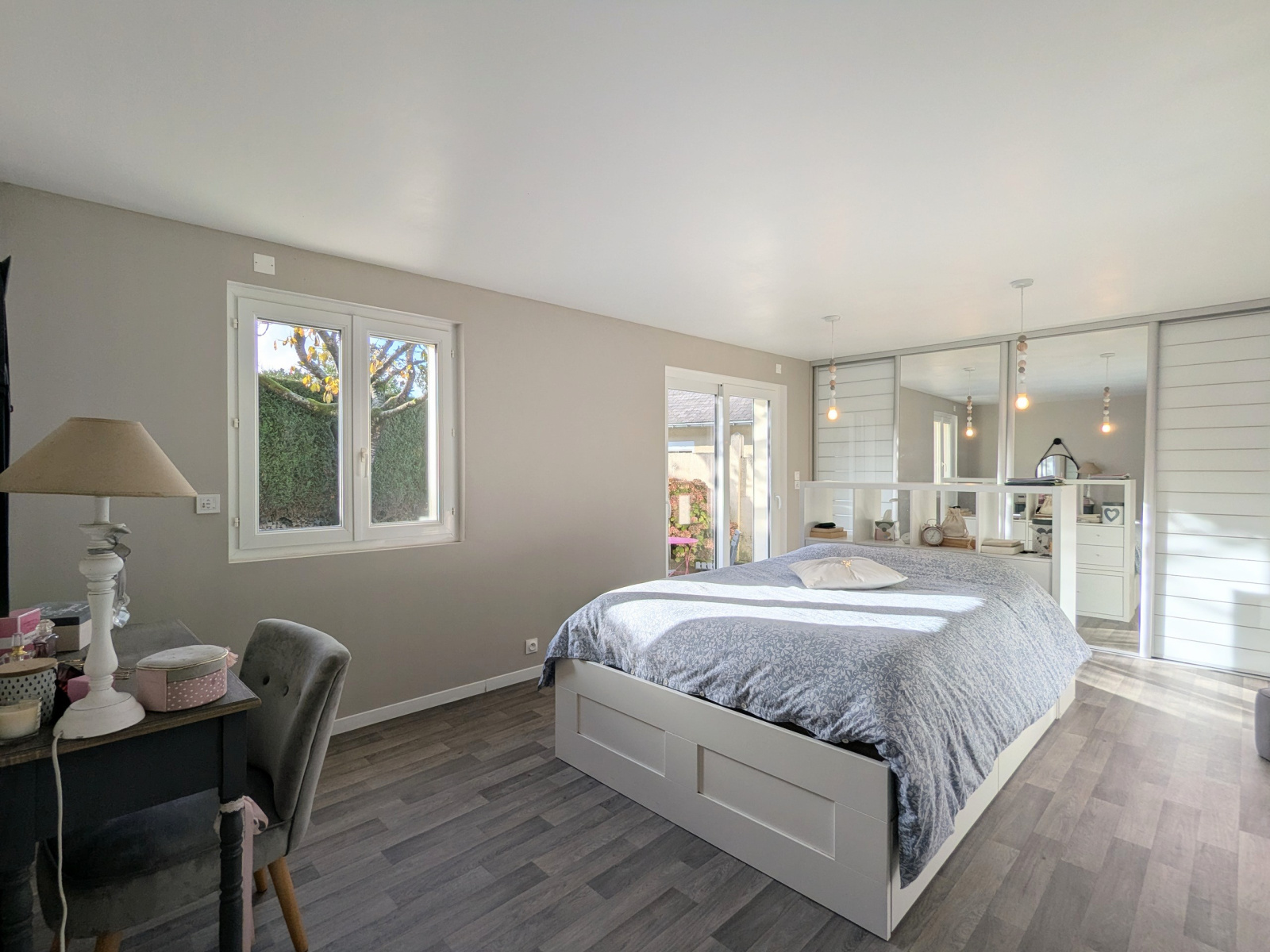 trois chambres dont une très grande offrant la possibilité d'en réaliser une quatrième