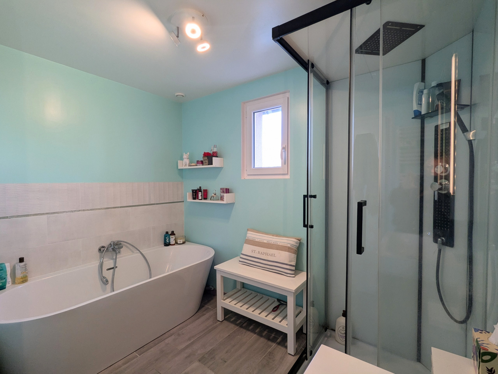 une salle de bains complète avec douche et baignoire et wc indépendant