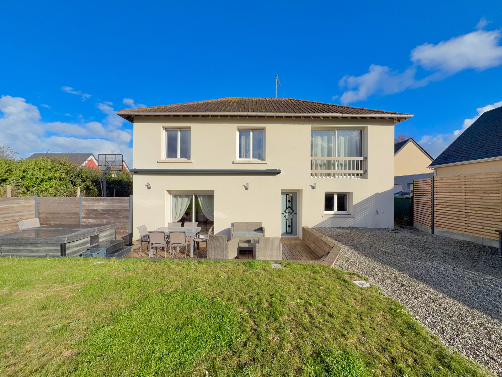 Idéalement située hors lotissement, sur une parcelle de plus de 550 m², cette maison entièrement rénovée en 2016 offre un cadre de vie privilégié : la plage à seulement 2 minutes, Caen à 15 minutes, et toutes les commodités accessibles immédiatement.