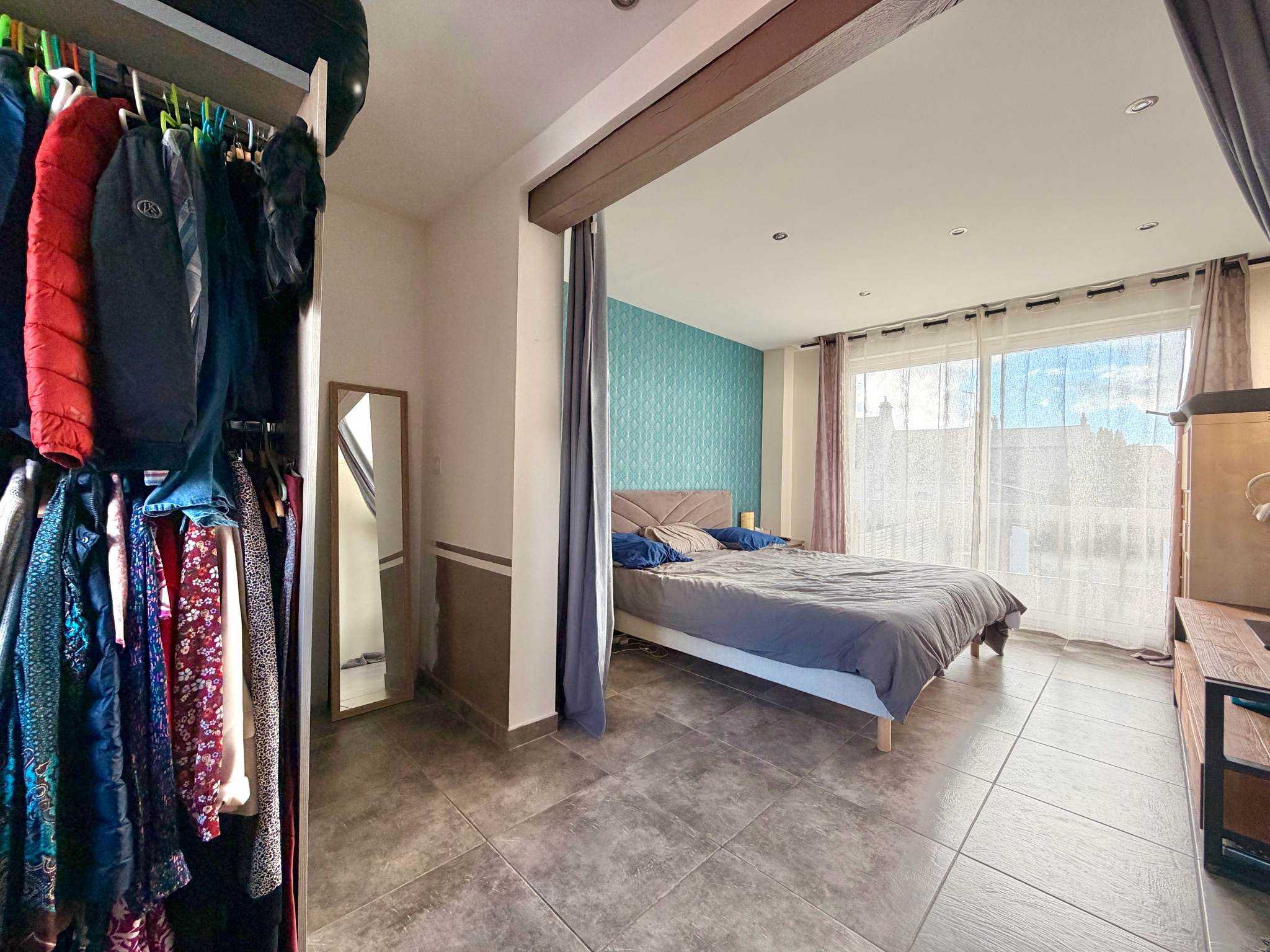 À l’étage, un palier dessert deux chambres, une salle de bain, ainsi qu’une suite parentale avec grand dressing et WC (possibilité de créer une salle d’eau privative).