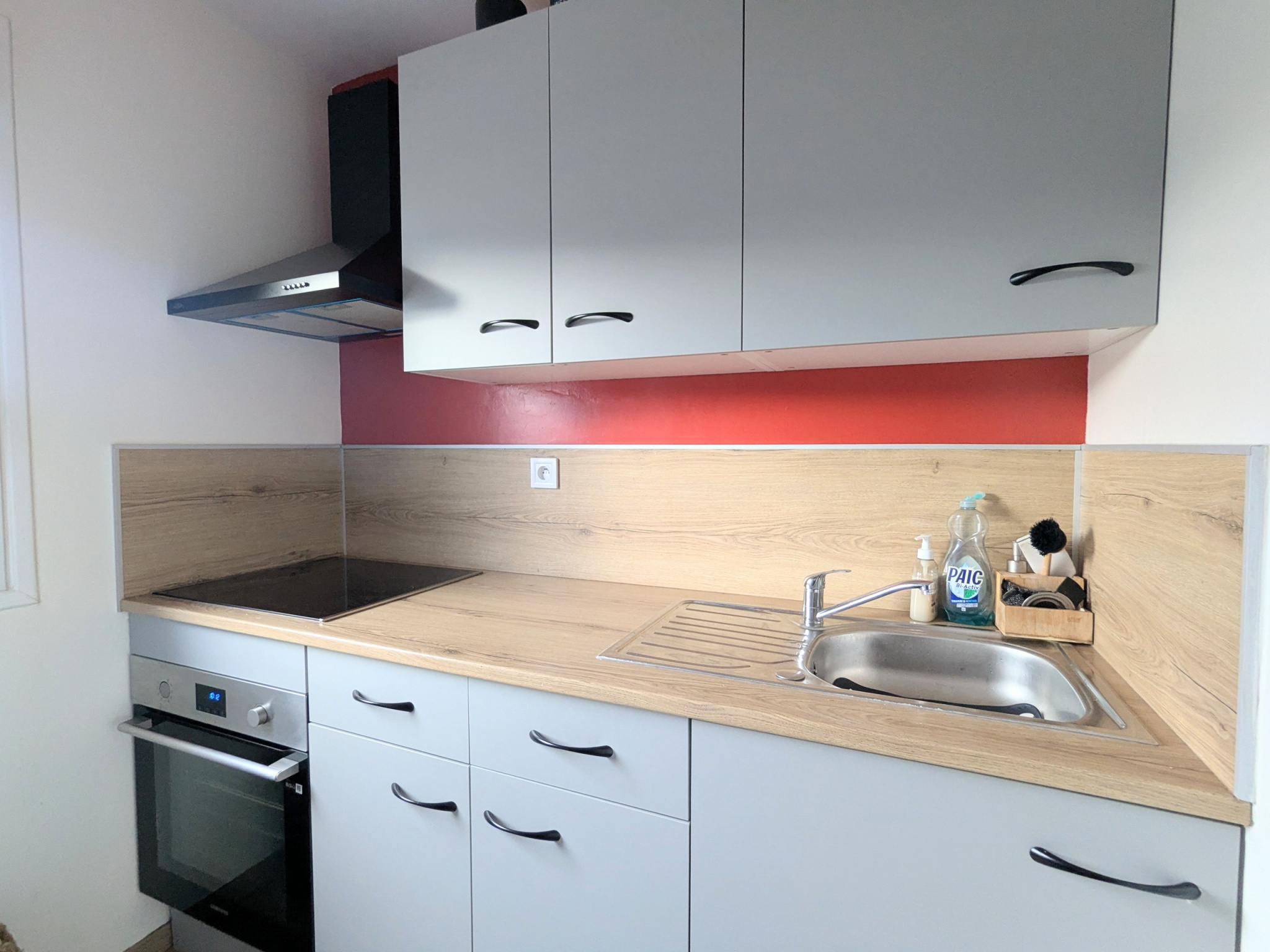 La cuisine séparée aménagée et équipée offre un espace fonctionnel ouvert sur l'extérieur