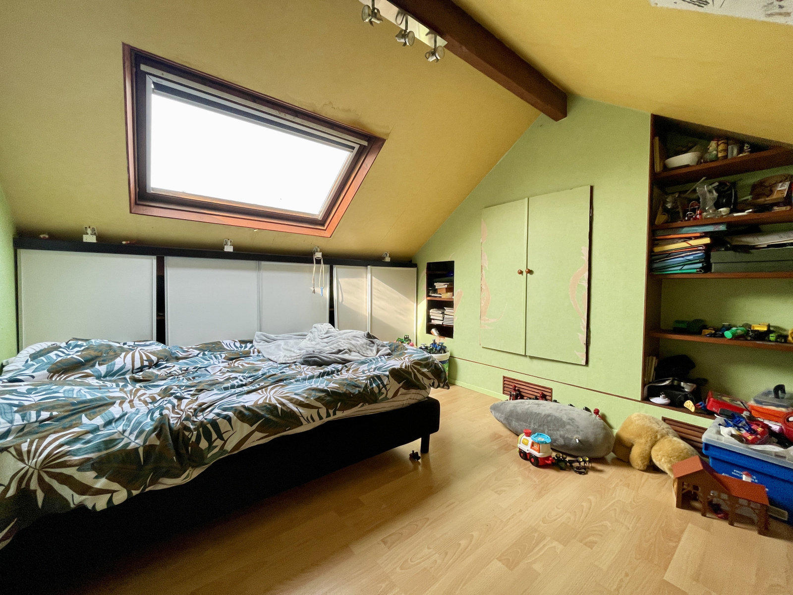 Sous les combles : une troisième chambre avec placards intégrés.