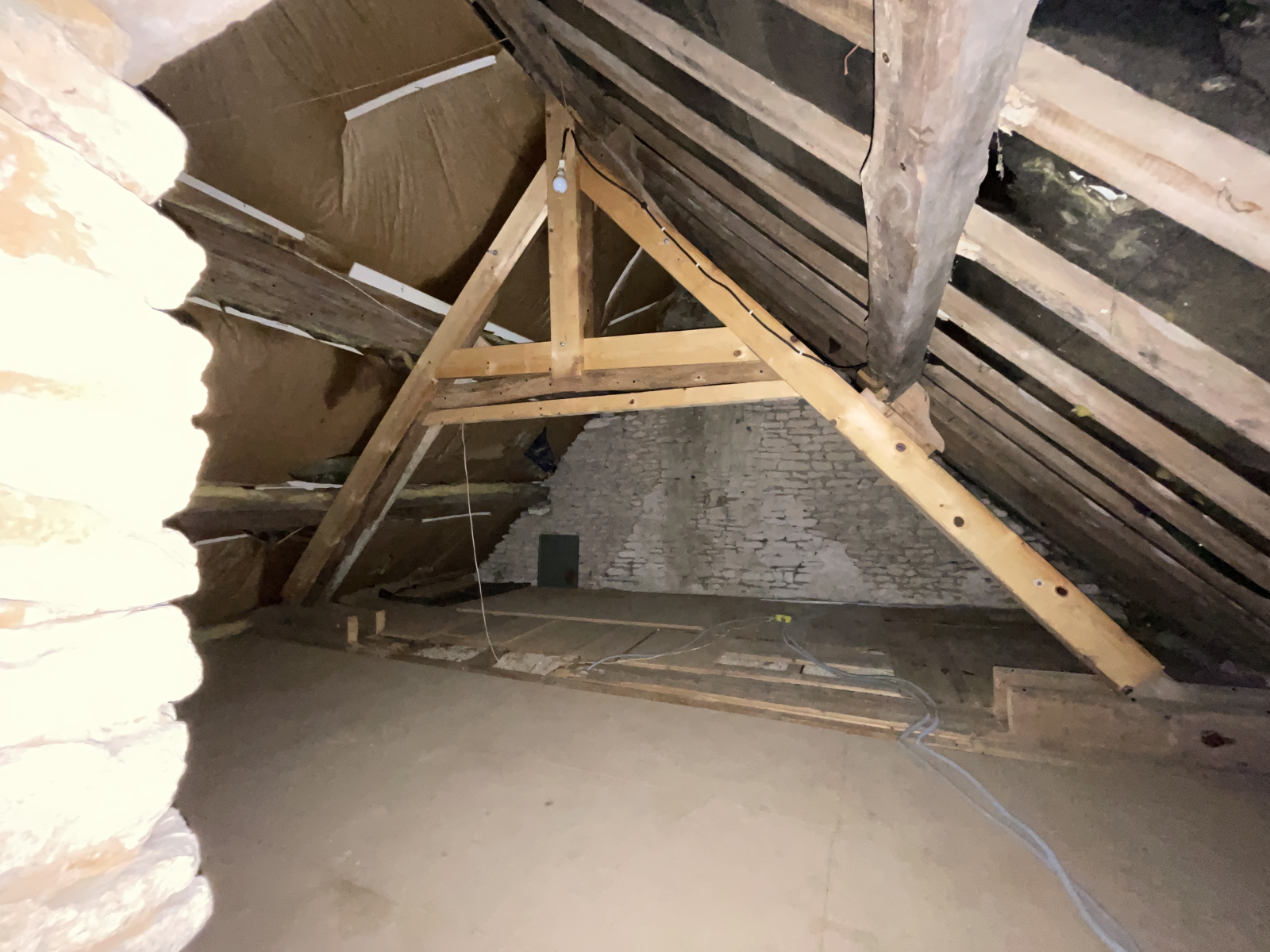 À l'étage, un dégagement dessert deux chambres, une salle de bains, un bureau qui permet l'accès aux combles. Ces derniers accueillent une chambre supplémentaire, avec la possibilité d’y aménager une salle d’eau, ainsi qu’un grenier.