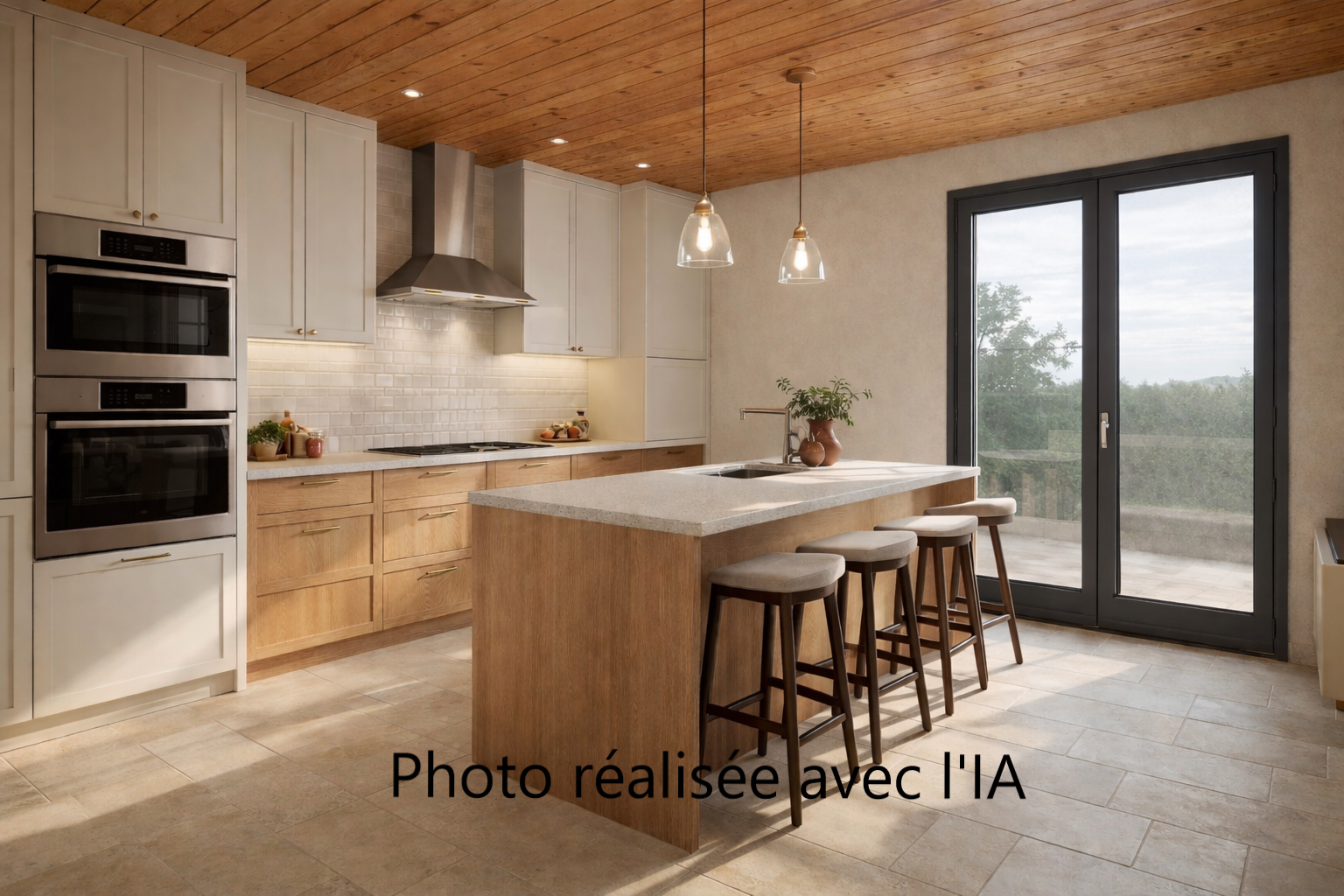 Travaux à prévoir (fenêtres, sanitaires, cuisine, rafraichissement décoratif), mais la maison est saine et bien suivie avec une chaudière gaz Viesmann récente