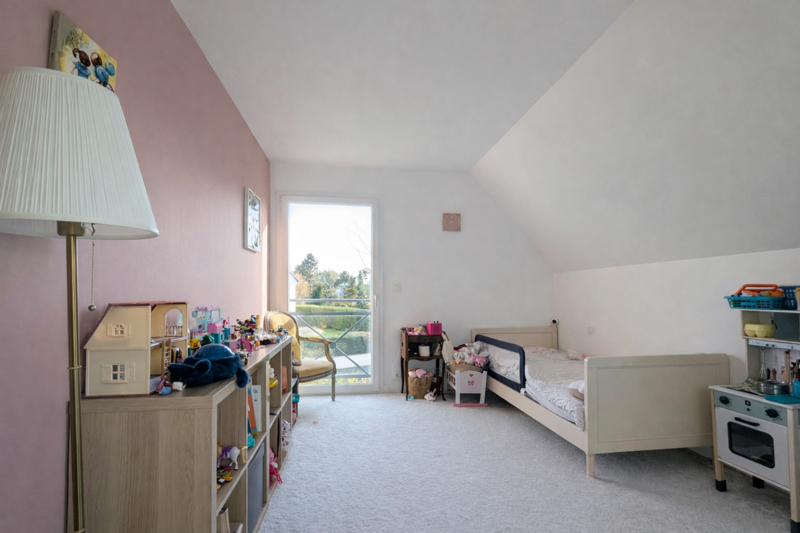 Dès l'entrée, la maison dévoile de beaux volumes lumineux et une atmosphère chaleureuse. Le séjour s'ouvre sur le jardin, tandis que le très grand salon, baigné de lumière, invite aux moments de convivialité autour sa belle cheminée.